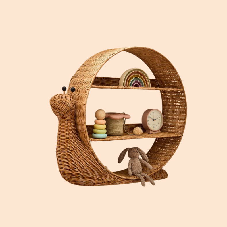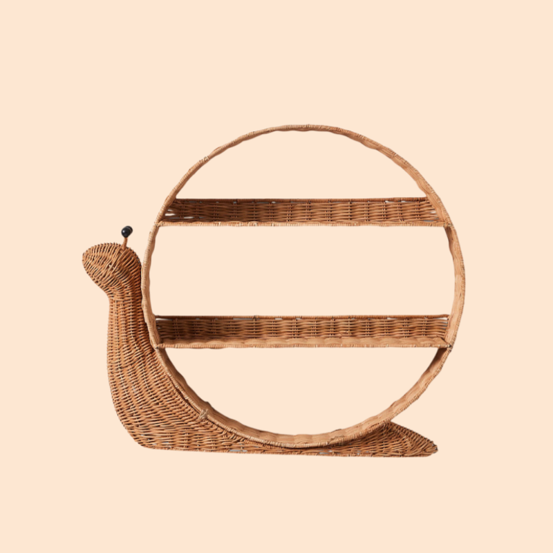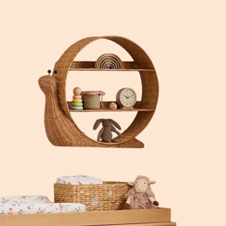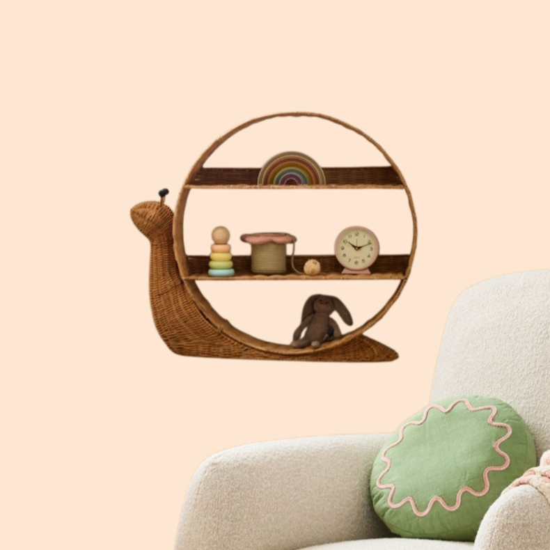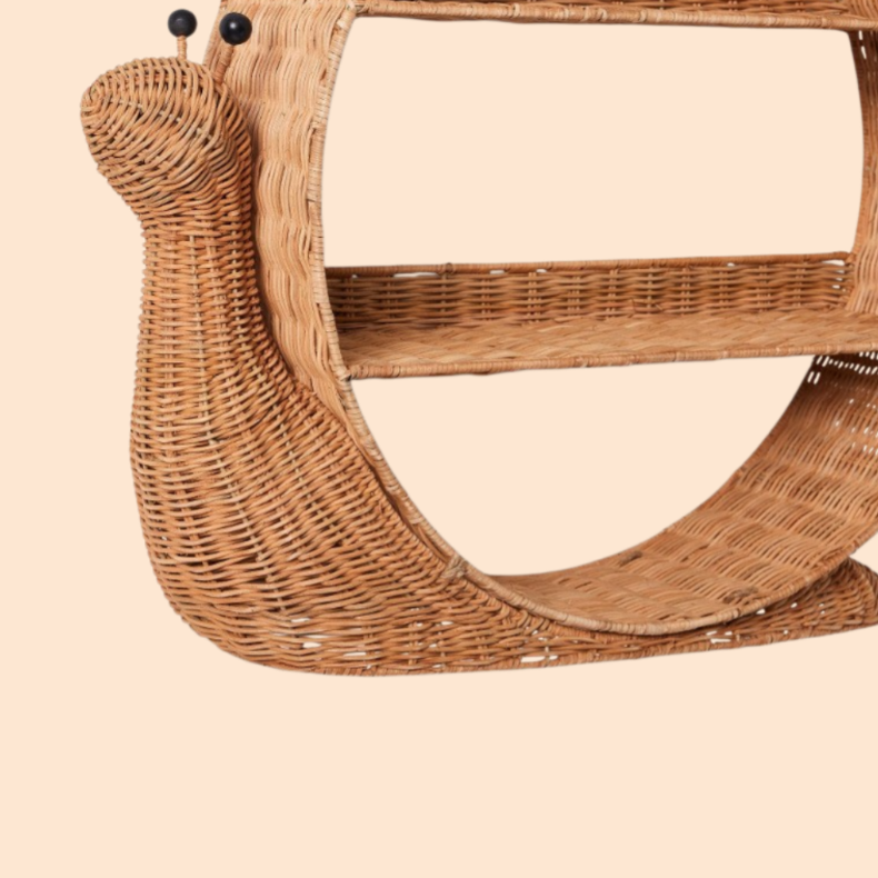 北歐風藤編蜗牛型壁掛置物架,掛牆設計,節省空間,兼具收納與裝飾,適用客廳、臥室、玄關。